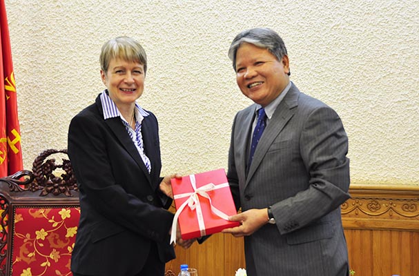 Cảm ơn Đại sứ và các cộng sự của Bà trong nhiệm kỳ tại Việt Nam đã luôn giúp đỡ, hỗ trợ Bộ Tư pháp trong quá trình xây dựng pháp luật, Bộ trưởng cũng chúc mừng Đại sứ đã hoàn thành xuất sắc nhiệm vụ của mình tại Việt Nam. Chuẩn bị rời Việt Nam nhận nhiệm vụ mới, Bộ trưởng mong rằng, dù ở đâu và cương vị nào, Đại sứ cũng sẽ quan tâm, ủng hộ và phát triển mối quan quan hệ hữu nghị tốt đẹp giữa hai Bên.