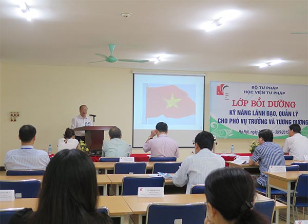 Triển khai Kế hoạch đào tạo, bồi dưỡng công chức, viên chức Bộ Tư pháp năm 2015 được ban hành kèm theo Quyết định số 3536/QĐ-BTP ngày 30/12/2014 của Bộ trưởng Bộ Tư pháp, Kế hoạch tổ chức Lớp Bồi dưỡng kỹ năng lãnh đạo quản lý cho Phó Vụ trưởng và tương đương được ban hành kèm theo Quyết định số 1285/QĐ-BTP ngày 06/7/2015 của Bộ trưởng Bộ Tư pháp và nhằm nâng cao năng lực, kỹ năng lãnh đạo, quản lý cho Phó Vụ trưởng và tương đương của các đơn vị thuộc Bộ, từ ngày 26/9/2015 đến ngày 30/9/2015, Học viện Tư pháp đã tổ chức thành công Lớp bồi dưỡng kỹ năng lãnh đạo, quản lý cho các đồng chí Phó Vụ trưởng và tương đương.