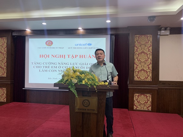 Được sự đồng ý của Lãnh đạo Bộ Tư pháp và với sự hỗ trợ của Quỹ Nhi đồng Liên hợp quốc (UNICEF) trong khuôn khổ Dự án thúc đẩy và bảo vệ quyền trẻ em tại Việt Nam, ngày 30/3/2021, Cục Con nuôi, Bộ Tư pháp đã tổ chức Hội nghị tập huấn tại Bắc Ninh về tăng cường năng lực giải quyết cho trẻ em ở cơ sở nuôi dưỡng làm con nuôi nước ngoài. Hội nghị do đồng chí Phạm Thị Kim Anh, Phó Cục trưởng Cục Con nuôi chủ trì với sự tham gia của gần 100 công chức, viên chức công tác tại một số tỉnh/thành phố phía Bắc, là những người trực tiếp tham gia giải quyết nuôi con nuôi trong nước và nước ngoài đến từ các Sở Tư pháp, Sở Lao động – Thương binh và Xã hội, các cơ sở trợ giúp xã hội.