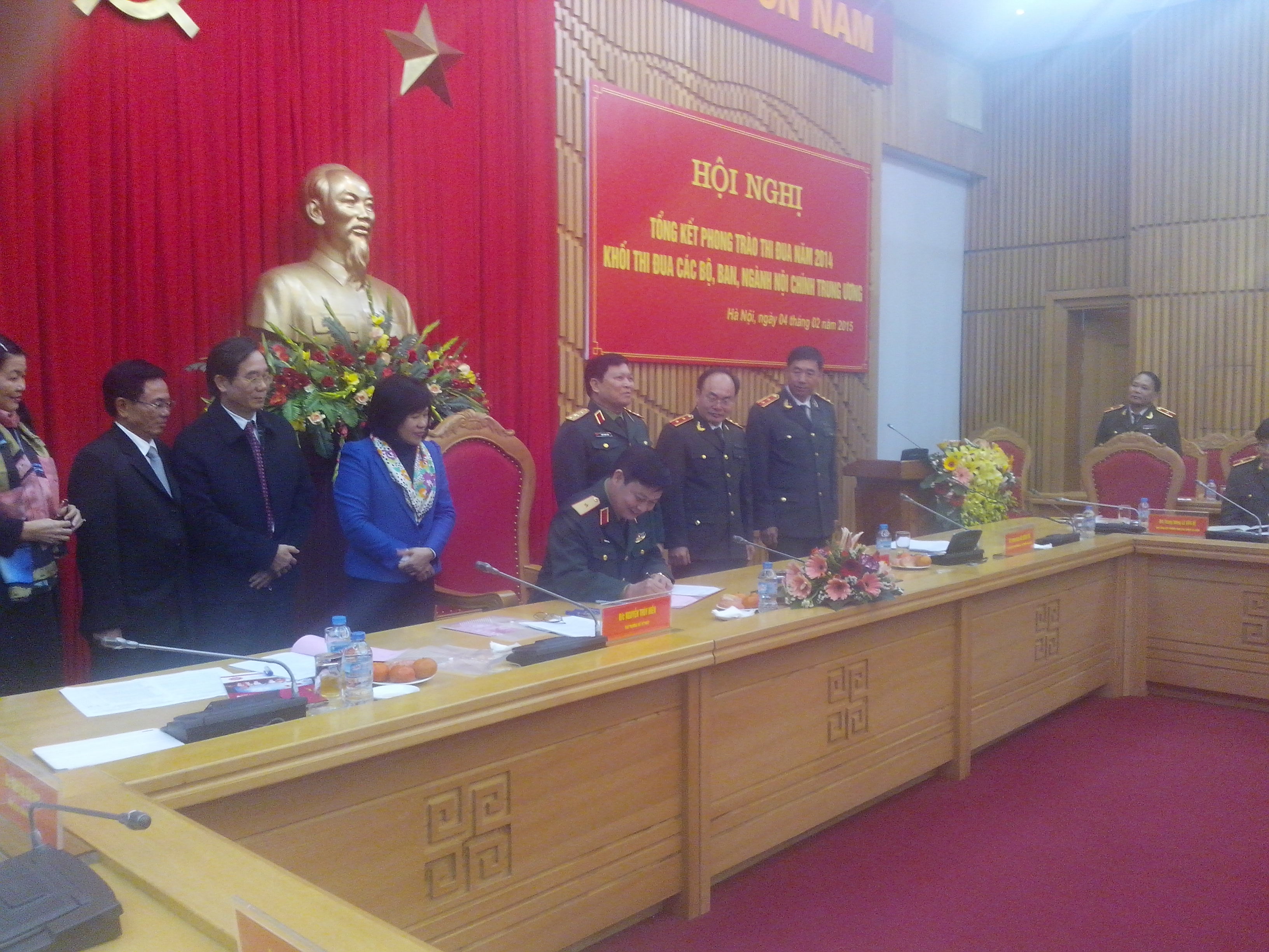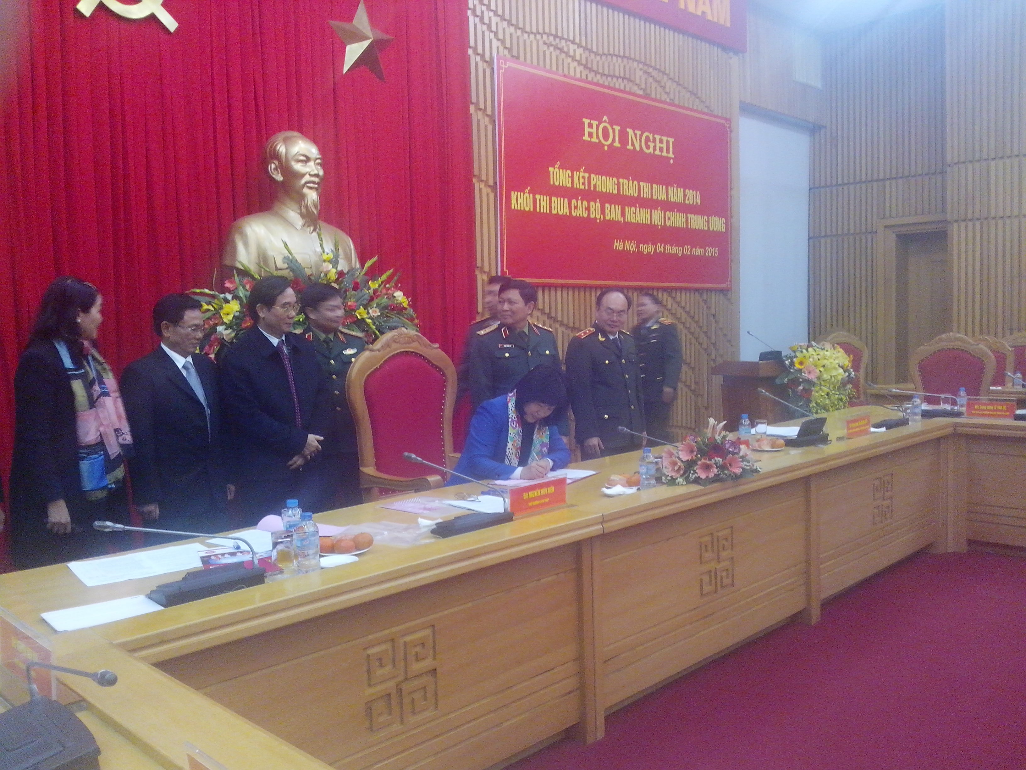 Cũng tại Hội nghị, các bộ, ban, ngành đã tổ chức ký kết giao ước thi đua năm 2015 trước sự chứng kiến của đồng chí Thượng tướng Ngô Xuân Lịch.