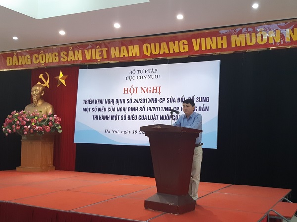 Ngày 05/3/2019, Chính phủ đã ban hành Nghị định số 24/2019/NĐ-CP sửa đổi, bổ sung một số điều của Nghị định số 19/2011/NĐ-CP ngày 21/3/2011 của Chính phủ quy định chi tiết thi hành một số điều của Luật nuôi con nuôi (Nghị định số 24/2019/NĐ-CP). Nghị định này sẽ có hiệu lực vào ngày 25/4/2019. Nhằm đảm bảo cho việc triển khai kịp thời, hiệu quả Nghị định số 24/2019/NĐ-CP, được sự cho phép của Lãnh đạo Bộ Tư pháp, ngày 19/4/2019 tại Hà Nội, Cục Con nuôi đã tổ chức Hội nghị triển khai Nghị định số 24/2019/NĐ-CP cho 32 địa phương thuộc các tỉnh miền Bắc và một số tỉnh miền Trung. Đại biểu tham dự Hội nghị là đại diện các Sở Tư pháp và Sở Lao động, Thương binh và Xã hội.