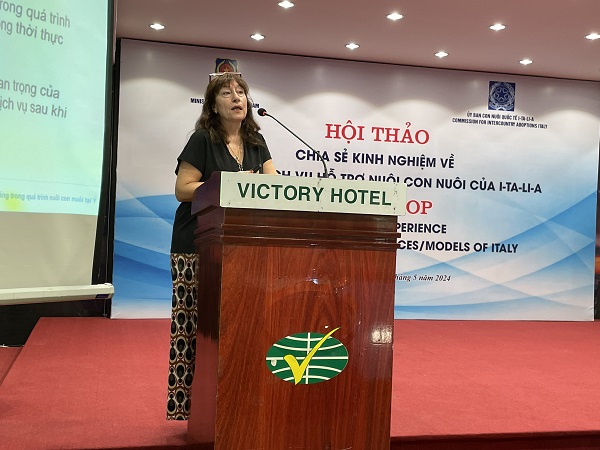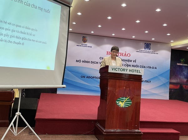 Tại Hội thảo, các cán bộ của Bộ Tư pháp (Vụ Con nuôi) cũng đã đánh giá tính cần thiết của công tác hỗ trợ trong quy trình giải quyết nuôi con nuôi; thực trạng công tác xã hội và hỗ trợ nuôi con nuôi và định hướng thực hiện hoạt động công tác xã hội và hỗ trợ trong thời gian tới. Hội thảo cũng dành nhiều thời gian để các đại biểu trao đổi, thảo luận. Về cơ bản, các đại biểu đều đánh giá cao hệ thống nuôi con nuôi của I-ta-li-a và thể hiện yên tâm đối với việc trẻ em Việt Nam được giải quyết cho làm con nuôi của các gia đình người I-ta-li-a.