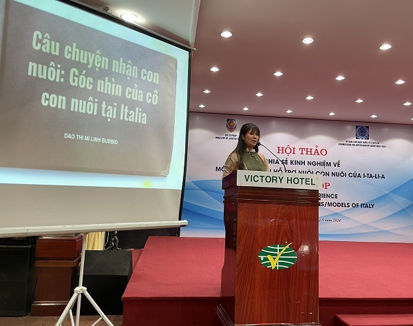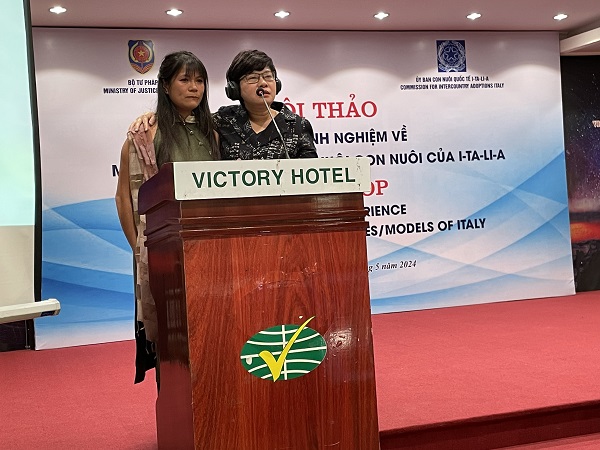 Đặc biệt, Hội thảo đã lắng nghe câu chuyện của cô con nuôi Linh Bubbio – là trẻ em Việt Nam được nhận làm con nuôi ở I-ta-li-a. Câu chuyện xúc động của cô đã chạm tới trái tim của rất nhiều đại biểu. Cô rất vui vì giờ đây ngoài Việt Nam, cô còn có quê hương thứ hai đó là I-ta-li-a. Cô bày tỏ sự tự hào khi là cầu nối giữa hai đất nước và hiện tại vẫn tiếp tục trong hành trình đó. Cô thể hiện sự biết ơn đối với gia đình cha mẹ nuôi I-ta-li-a và cơ quan có thẩm quyền Việt Nam. Hiện nay, cô là một họa sỹ có tiếng ở I-ta-li-a, đang học Thạc sỹ về hội họa và lựa chọn Việt Nam là chủ đề nghiên cứu.