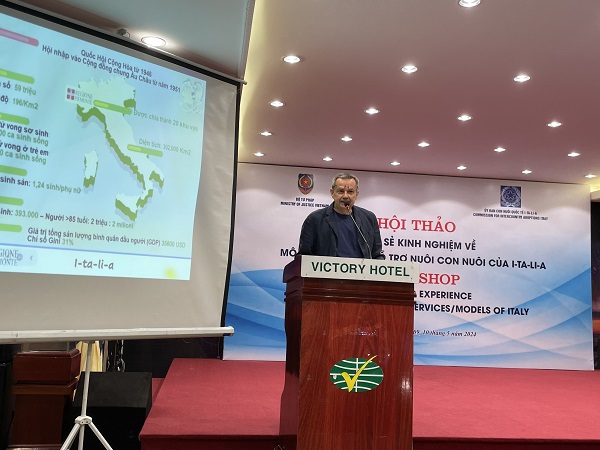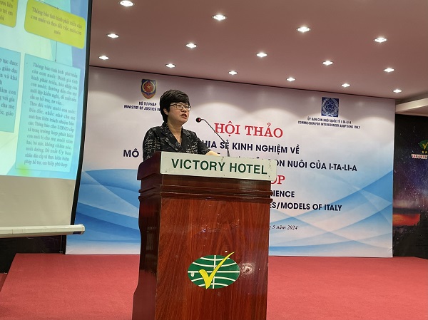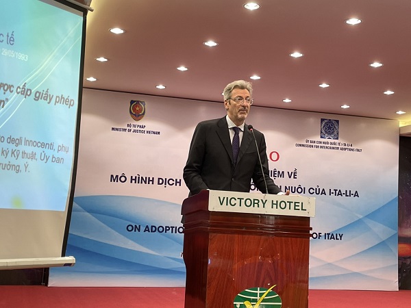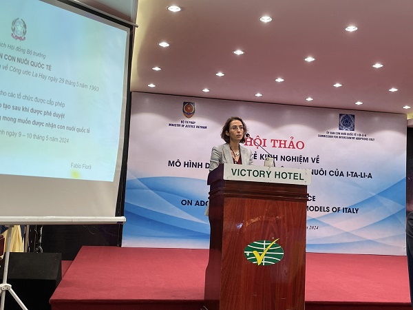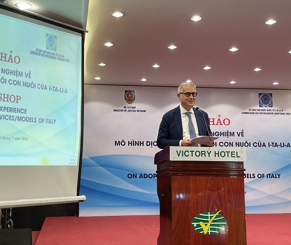 Ông Vincenzo Starita, Phó Chủ tịch CAI cho biết, các hoạt động hợp tác trong lĩnh vực nuôi con nuôi giữa Việt Nam và I-ta-li-a trên cơ sở Hiệp định hợp tác về nuôi con nuôi giữa Việt Nam và Italy năm 2003 cũng như Công ước La Hay số 33 về Bảo vệ trẻ em và hợp tác trong lĩnh vực nuôi con nuôi trong những năm qua đã góp phần tạo nên nhiều gia đình mới đa sắc tộc, tôn trọng bản sắc cá nhân và cuộc sống trẻ em Việt Nam. Tuy nhiên, nhằm đảm bảo lợi ích cao nhất của mỗi trẻ em bị bỏ rơi hoặc trẻ em không nơi nương tựa, hai bên cần tiếp tục tăng cường trao đổi, chia sẻ kinh nghiệm, phối hợp chặt chẽ với nhau trong quá trình giải quyết nuôi con nuôi. Ông Vincenzo Starita cho rằng Hội thảo này là cơ hội tốt để các chuyên gia đa ngành của I-ta-li-a trình bày, chia sẻ quan điểm, cơ chế, cách thức hỗ trợ cho công tác giải quyết nuôi con nuôi để bảo đảm việc nuôi con nuôi thực sự là hình thức chăm sóc thay thế lâu dài, bền vững cho trẻ em, đồng thời bảo đảm quyền cơ bản của trẻ em là được lớn lên và giáo dục trong gia đình.