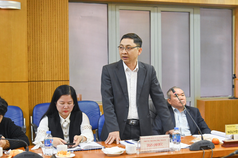 Thứ trưởng Trần Tiến Dũng phát biểu kết luận Hội nghị.Đối với công tác thẩm định VBQPPL, Thứ trưởng đề nghị ba đơn vị tập trung nguồn lực bảo đảm tiến độ, tiếp tục phát huy, nâng cao hơn nữa chất lượng thẩm định văn bản; đồng thời lưu ý về cách thức, quy trình thẩm định. Các đơn vị cũng cần nghiên cứu, có các phương pháp, quy trình, cách thức mới để cùng các bộ, ngành, địa phương tháo gỡ khó khăn trong các lĩnh vực công tác; tăng cường rà soát quy trình, quy chế hoạt động nội bộ, cân đối chức năng, công việc của các công chức trong từng đơn vị, kịp thời bổ sung cán bộ để xử lý các công việc phức tạp, phát sinh.