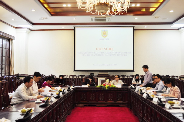 Các đại biểu tham dự Hội nghị đã sôi nổi góp ý hoàn thiện phương hướng, nhiệm vụ, các giải pháp tổ chức thực hiện công tác thi đua – khen thưởng năm 2016 như cần nhận diện rõ khó khăn, vướng mắc để có kế hoạch khắc phục thiết thực trong năm; xây dựng Quỹ thi đua – khen thưởng của Cụm; đề ra khẩu hiệu thi đua nêu bật được đặc thù của Cụm Thi đua số I; có thể khen thưởng theo tỷ lệ đối với cán bộ trẻ, cán bộ cấp Phòng, cán bộ cấp Vụ nhằm hạn chế việc khen thưởng mới tập trung vào lãnh đạo đơn vị… Hội nghị cùng nhau bình xét, suy tôn danh hiệu Cờ thi đua ngành Tư pháp cho 4 đơn vị, Cờ thi đua Chính phủ cho 2 đơn vị.