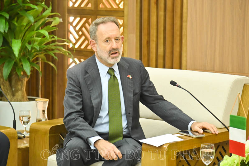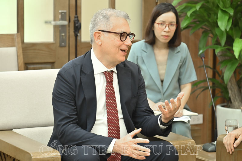 Tại buổi tiếp, Thứ trưởng Bộ Tư pháp Trần Tiến Dũng hoan nghênh và đánh giá cao kết quả hợp tác tốt đẹp trong lĩnh vực nuôi con nuôi giữa Việt Nam và I-ta-li-a trên cơ sở Hiệp định hợp tác về nuôi con nuôi giữa Việt Nam và I-ta-li-a năm 2003 và Công ước La Hay số 33, qua đó, đóng góp chung vào quan hệ hợp tác đối tác chiến lược giữa hai nước. Thứ trưởng cho biết, Đảng, Nhà nước Việt Nam đã ban hành nhiều chủ trương, chính sách pháp luật về chăm sóc, giáo dục, bảo vệ trẻ em tiếp cận bình đẳng nguồn lực, hưởng thụ công bằng các dịch vụ xã hội. Trong năm 2024, Chính phủ Việt Nam đang tích cực chỉ đạo, triển khai các chính sách nhằm phục hồi kinh tế, xã hội sau đại dịch Covid-19. Song song với đó, các chương trình về an sinh xã hội cũng được Chính phủ Việt Nam quan tâm đẩy mạnh triển khai.