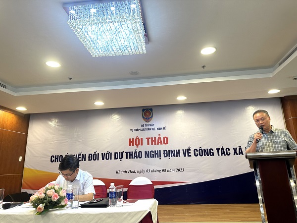 Triển khai thực hiện Quyết định số 112/QĐ-TTg ngày 22/01/2021 của Thủ tướng Chính phủ ban hành Chương trình phát triển công tác xã hội giai đoạn 2021 – 2030; Quyết định số 418/QĐ-BTP ngày 24/3/2021 của Bộ trưởng Bộ Tư pháp về việc ban hành Kế hoạch triển khai thực hiện Chương trình công tác xã hội của Bộ Tư pháp giai đoạn 2021-2025 và Quyết định số 296/QĐ-BTP ngày 09/3/2023 của Bộ trưởng Bộ Tư pháp về việc ban hành Kế hoạch triển khai thực hiện Chương trình công tác xã hội của Bộ Tư pháp năm 2023, Bộ Tư pháp tổ chức “Hội thảo cho ý kiến đối với dự thảo Nghị định về công tác xã hội” tại tỉnh Khánh Hòa vào ngày 03/8/2023 và Đoàn khảo sát việc thi hành các quy định của pháp luật về phát triển công tác xã hội tại tỉnh Ninh Thuận vào ngày 04/8/2023. Tham gia Hội thảo và Đoàn khảo sát có đại diện của Bộ Tư pháp (Vụ Pháp luật dân sự - kinh tế, Vụ Con nuôi), Bộ Lao động - Thương binh và Xã hội, Bộ Tài chính, Bộ Y tế, Bộ Giáo dục và Đào tạo, dưới sự chủ trì của ông Cao Đăng Vinh, Phó Vụ trưở...