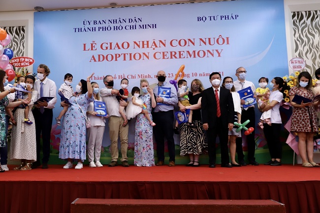 Ngày 23 tháng 10 năm 2021, Lễ giao nhận 92 trẻ em có hoàn cảnh đặc biệt cư trú tại 23 tỉnh, thành phố trực thuộc Trung ương cho 91 gia đình cha mẹ nuôi của 08 nước châu Âu đã được Bộ Tư pháp phối hợp với các Bộ, ngành, địa phương liên quan tổ chức tập trung, an toàn và thành công tại Thành phố Hồ Chí Minh trong bối cảnh dịch Covid-19. Sự kiện này là minh chứng cho thấy ý nghĩa nhân văn sâu sắc của công tác nuôi con nuôi, đồng thời thể hiện cam kết mạnh mẽ của Bộ, ngành Tư pháp trong thúc đẩy công tác con nuôi và hợp tác quốc tế trong lĩnh vực này, bảo đảm quyền lợi tốt nhất cho trẻ em được nuôi dưỡng và phát triển toàn diện trong môi trường gia đình, qua đó đóng góp tích cực vào việc cụ thể hóa chính sách chăm sóc, giáo dục và bảo vệ trẻ em của Nhà nước, thực thi hiệu quả các điều ước quốc tế có liên quan mà Việt Nam là thành viên cũng như góp phần thực hiện đường lối đối ngoại của Đảng, đất nước ta. Hoạt động này nhận được sự quan tâm của xã hội cũng như tạo dấu ấn sâu sắc trong quan hệ hợp tác ngoại giao giữa Việt Nam với Châu Âu, thể hiện gốc rễ nhân đạo. Các nước đánh giá rất cao những nỗ lực của Chính phủ, Bộ, ngành Tư pháp Việt Nam trong thực hiện mục tiêu kép, vừa chống dịch vừa phát triển kinh tế - xã hội, đặc biệt công tác đảm bảo an sinh xã hội, trong đó có mục tiêu vì lợi ích tốt nhất của trẻ.
